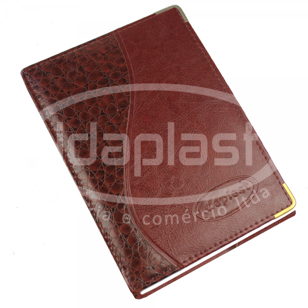 Agenda personalizada para brinde de empresas. Confeccionada em couro sintético (2 tipos para escolha – consulte: diversas cores e texturas!). Com acabamento em costura. Detalhe em formato vertical próximo ao dorso da peça.