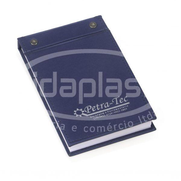 Bloco de anotações personalizado para brinde de empresas. Confeccionada em couro sintético (diversas cores e texturas!). Com acabamento em costura.