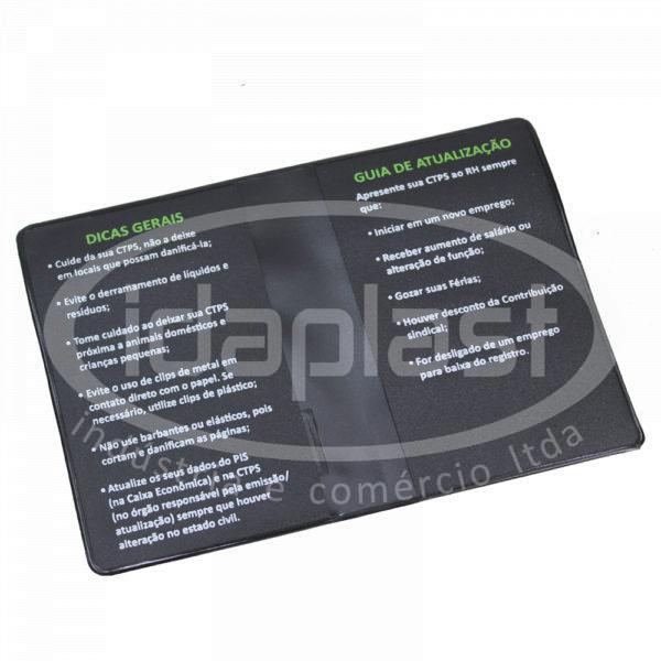 Capa para carteira de trabalho personalizada. CTPS confeccionada em PVC com acabamento em solda eletrônica. Bolsos internos simples, confeccionados no mesmo material. Produto COM visor frontal.