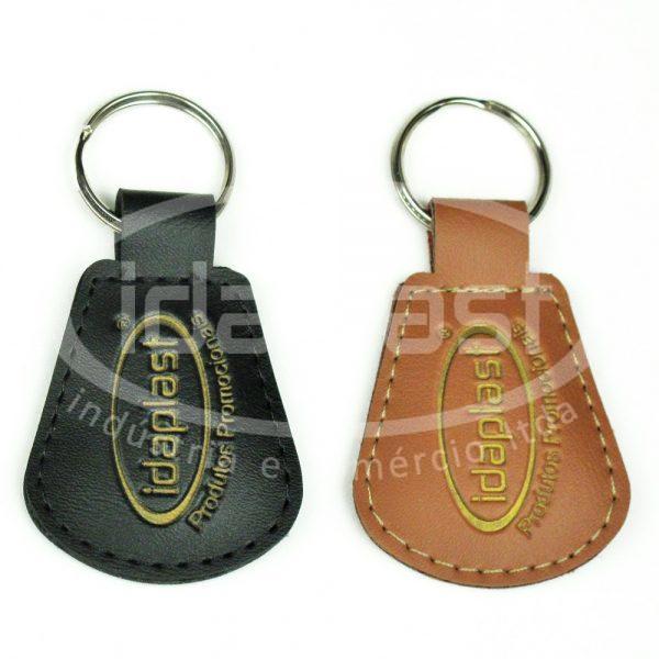 Chaveiro personalizado em couro sintético com mosquetão ou somente com argola. Monte o seu com seu consultor. Brinde sofisticado para todos os segmentos!