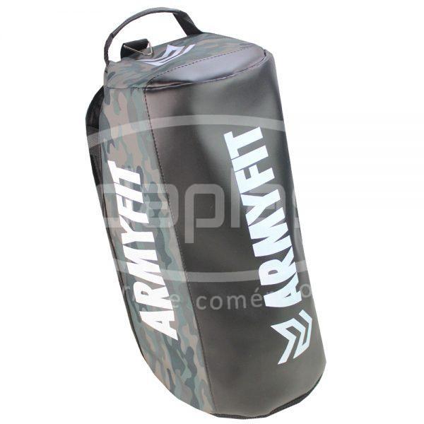 Bolsa esportiva personalizada confeccionada em nylon com detalhes em couro sintético. Com alça de mão lateral, alça de ombro e alça tiracolo. Com opcional de ombreiras na alça de ombro para carregar o modelo como mochila.