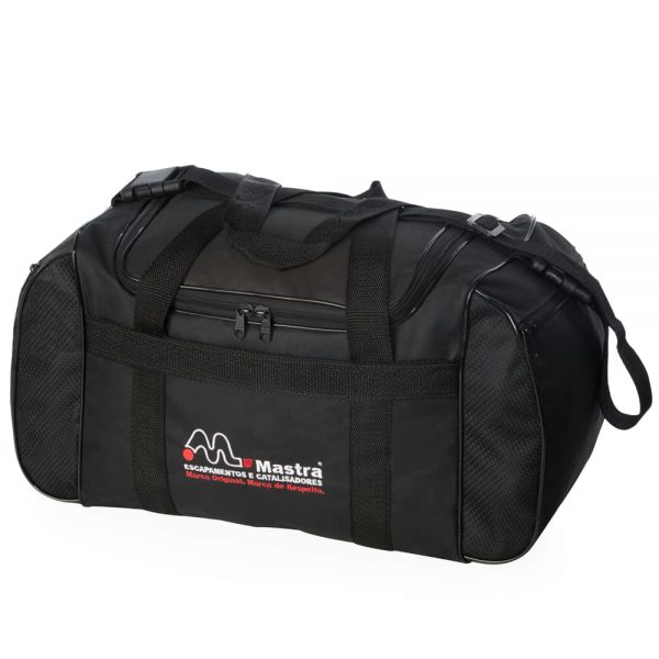 Bolsa personalizada ideal para brinde em viagens! Confeccionada em nylon, com bolsos laterais em zíper e compartimento principal.