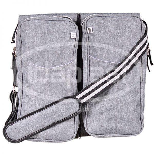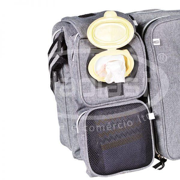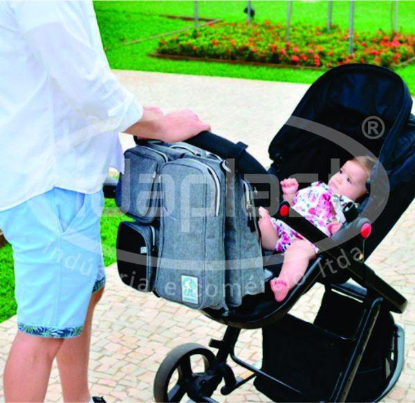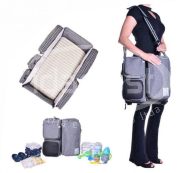 Bolsa maternidade e berço portátil. Conta com alça tiracolo, bolsos diversos para itens da gestante e do bebê. Compartimento térmico, colchonete, porta lenços, chupeta, roupas úmidas. Defina materiais e monte a sua com seu consultor!