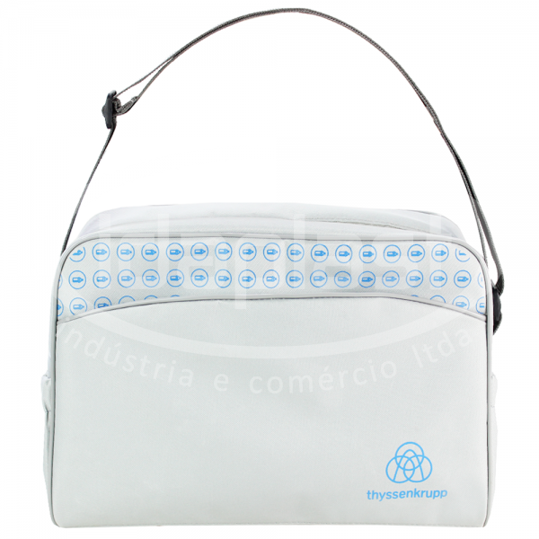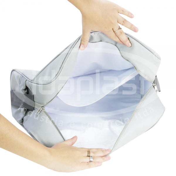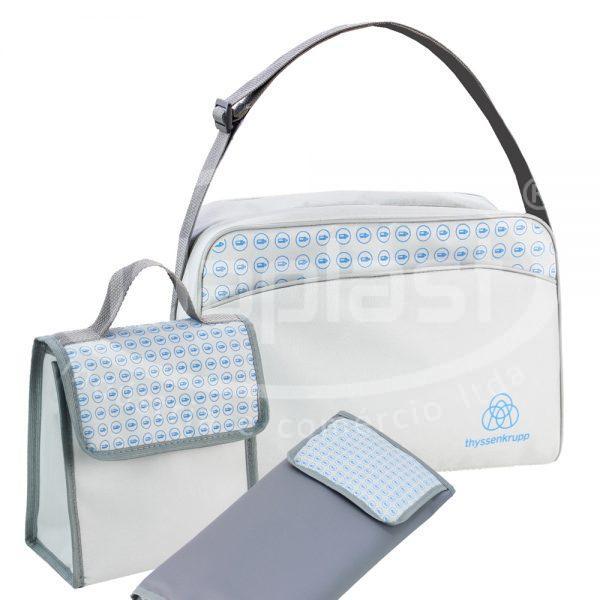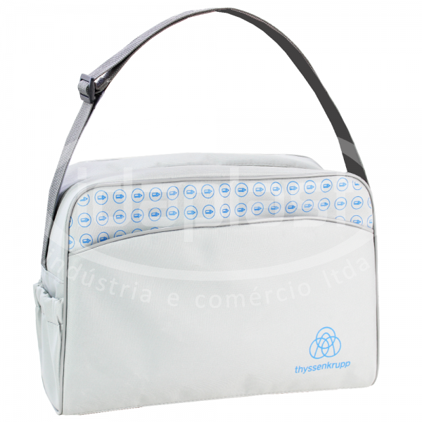 Bolsa personalizada para gestante durante maternidade. Com fecho em imã e compartimento principal em zíper. Com bolsos laterais. Interior térmico.