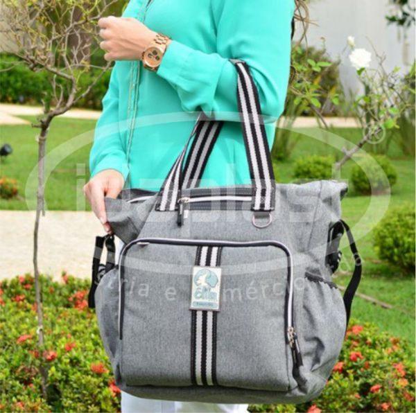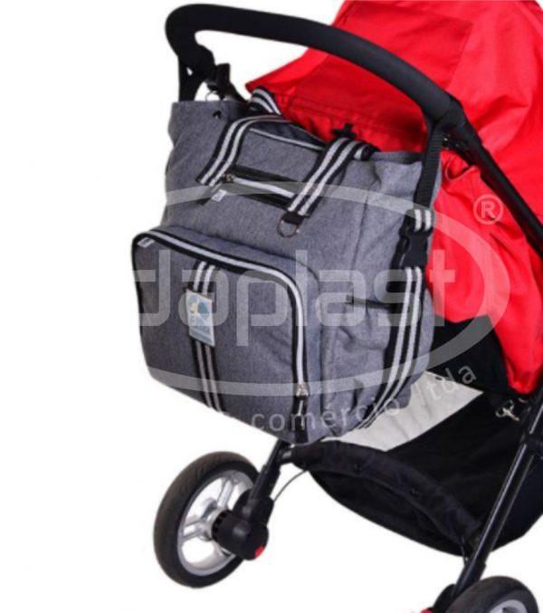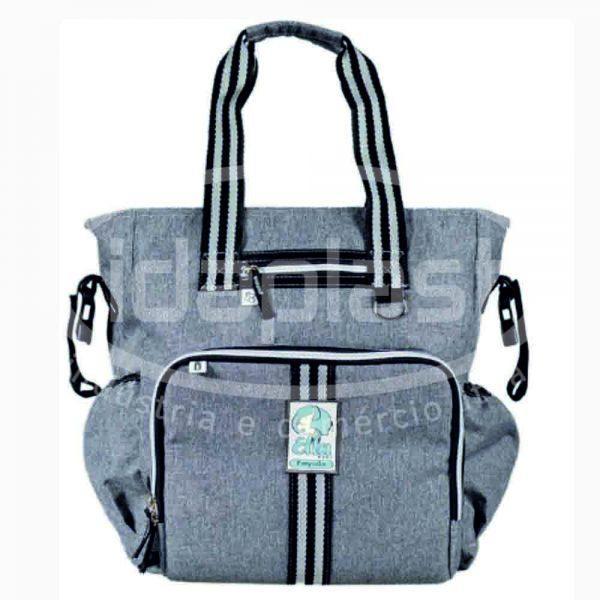 A Idaplast é fabricante de bolsa maternidade personalizada no atacado. Modelo em nylon, com bolsos laterais. Bolso frontal térmico para mamadeiras. Interior com forro e fechamento em zíper. Cursores com puxadores especiais em correia. Com alças laterais para pendurar em carrinho.