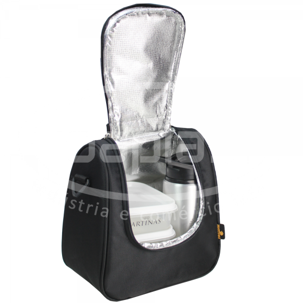 Bolsa térmica confeccionada em poliéster, com alça de mão especial e alça tiracolo removível. Com zíper comum ou trator. Escolha entre cursor comum ou puxador especial. Interior em laminado térmico. Monte a sua com seu consultor!