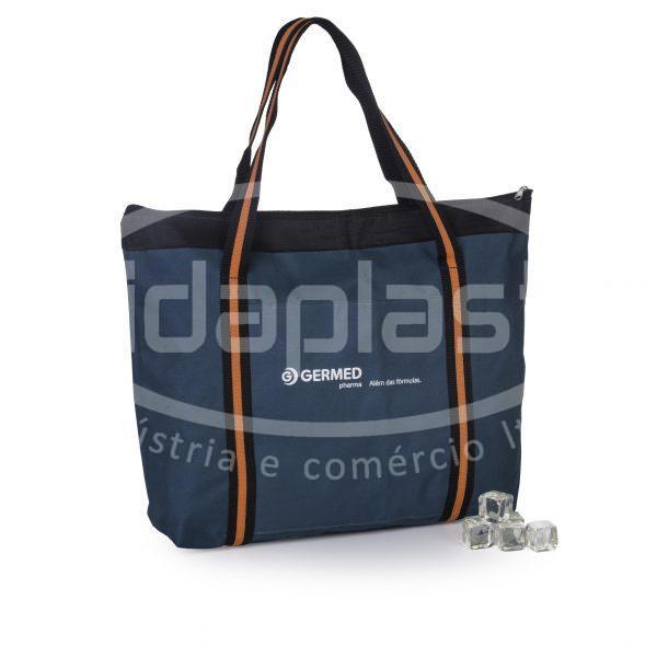 Sacola térmica personalizada para brinde com alça de ombro e interior térmico antivazamentos. Com fechamento em zíper.