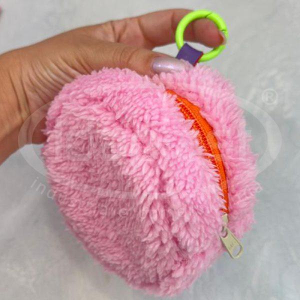 Bag Charm de mini necessaire redonda em pelúcia com mosquetão e zíper. Monte o seu como preferir!