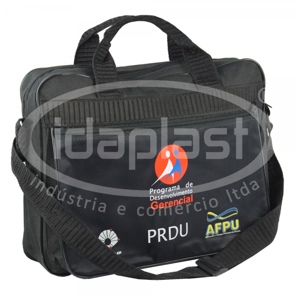 Bolsa personalizada para cursos e eventos, tipo congresso. Com alça de mão e alça tiracolo.