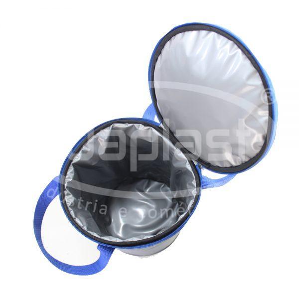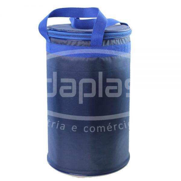 Bolsa térmica redonda ideal para refrigerantes! Em nylon, com alça de mão e interior térmico antivazamentos.