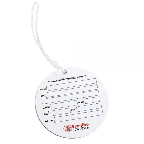 Tag de mala personalizada para bagagem. Em PVC rígido branco. Brinde ideal para viagens e turistas!