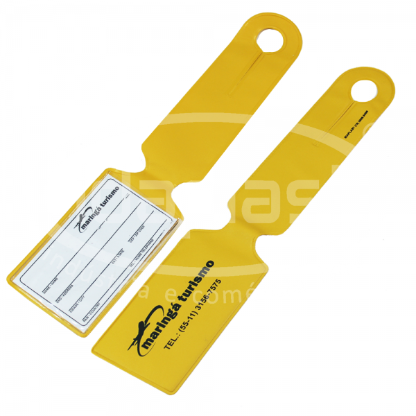Etiqueta de mala personalizada em PVC. Tag ideal para brindes de viagens!