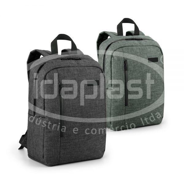 Mochila para notebook em 600D de alta densidade. Compartimento forrado, com duas divisórias almofadadas para notebook até 14” e tablet 9.7”. Com um bolso frontal e lateral, parte posterior e alças almofadadas e placa metálica removível com imã, 50 x 20 mm