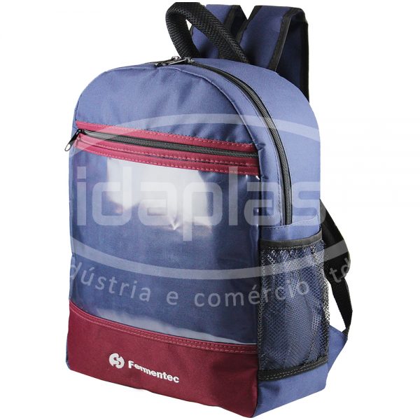 Mochila personalizada ideal para escolas e eventos e escolas. Com sugestão do bolso frontal confeccionado em PVC transparente para identificação via encarte de papel.