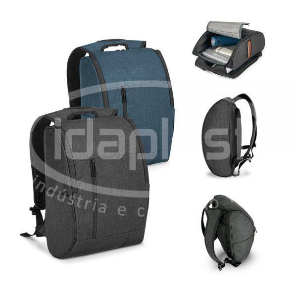 Mochila para notebook em 600D de alta densidade. Compartimento com 2 divisórias almofadadas para notebook até 15.6” e tablet 9.7”. Interior forrado e almofadado. Mochila com 1 bolso frontal e 2 bolsos laterais. Parte posterior almofadada, com sistema de apoio acolchoado para as costas e alças almofadadas.