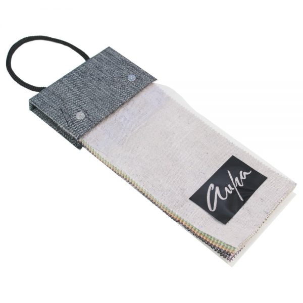 Capa para mostruário de tecidos em PVC cristal transparente e dorso rígido com acabamento em colagem. Confeccionado em nylon, com alça de mão em cordão.