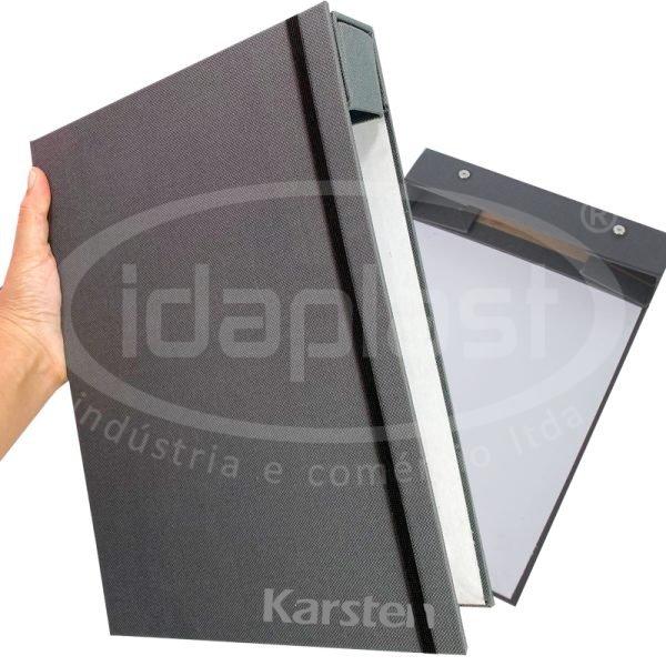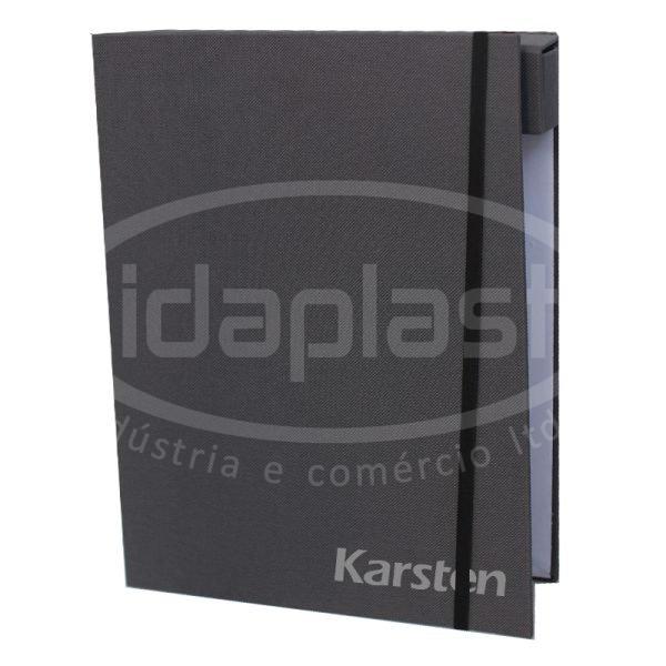 Capa tipo pasta mostruário para tecidos. Apresente suas amostras de forma prática e elegante. Confeccionada em nylon 600 (diversas cores disponíveis), com elástico para fechamento e parafusos. Surpreenda seu cliente ao expor seus tecidos de maneira personalizada!