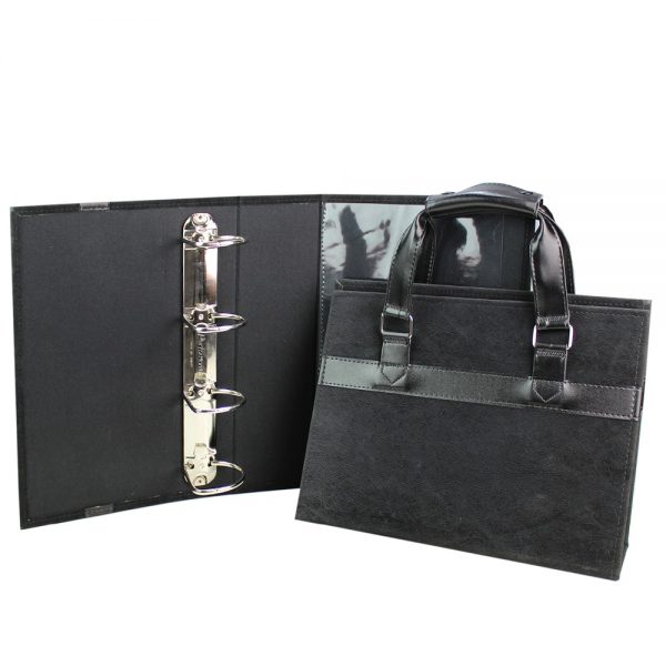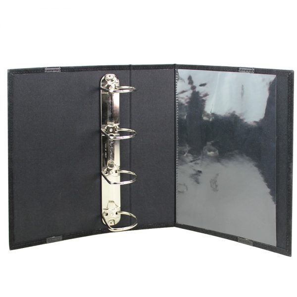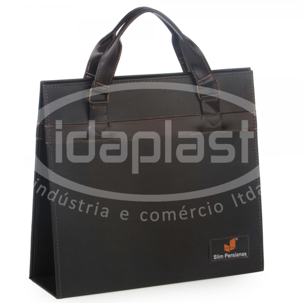 Capa personalizada para mostruário de persianas. Interior com ferragem 2 ou 4 argolas. Para grandes quantidades (acima de 1.000pçs) pode contar com blister para mini mostruários. Acabamento primoroso em costura, no couro sintético. Com alça de mão.