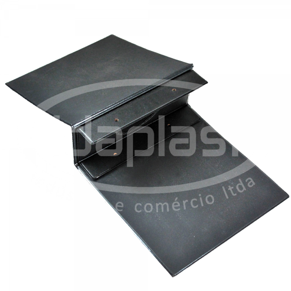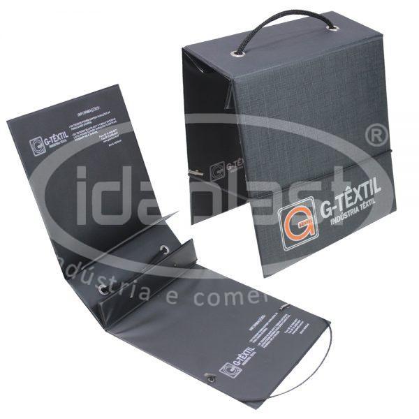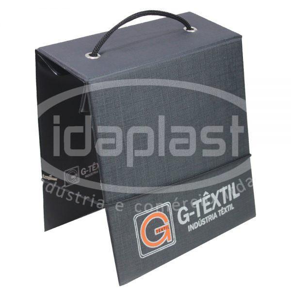 Pasta mostruário para persianas em couro sintético (diversas cores e texturas para escolha!) ou PVC. Com dorso embutido com parafusos e alça de mão.