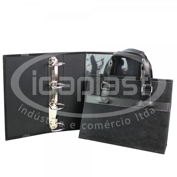Pasta mostruário para persianas personalizada. Confeccionada em couro sintético (diversos tipos, texturas e cores para escolha!). Interior com ferragem 4 argolas. Acabamento em costura.