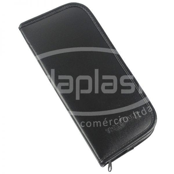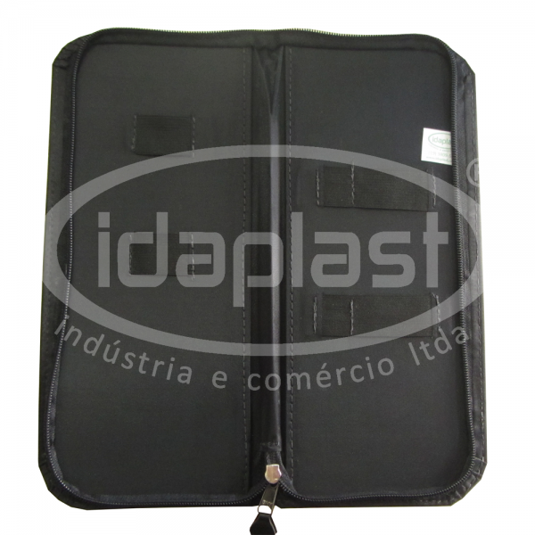 Estojo personalizado tipo mostruário para pinça e tesouras. Confeccionado em nylon ou couro sintético, com elásticos internos. Montagem dos elásticos internos de acordo com necessidade do cliente.
