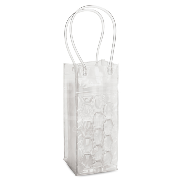 Porta vinho em PVC. Sacola refrigeradora para 1 garrafa em PVC com alças de 35 cm.