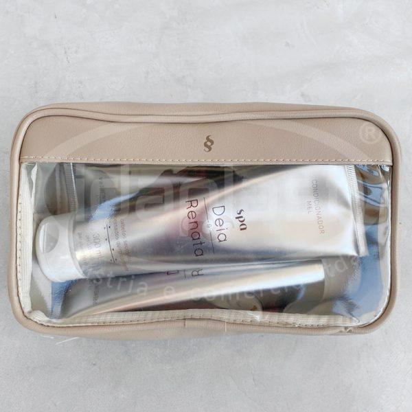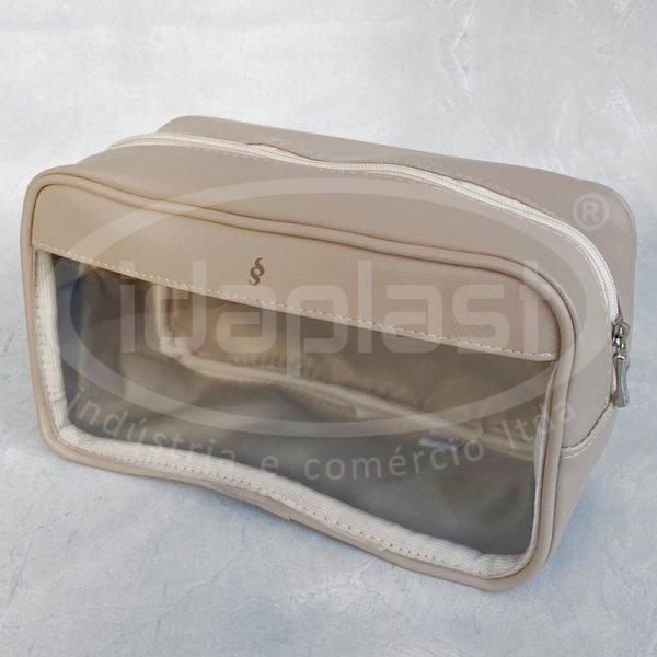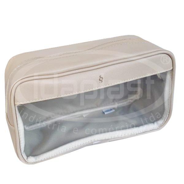Necessaire personalizada ideal para embalagem de shampoo e outros cosméticos. Brinde feminino especial! Confeccionado em courino sintético (diversos tipos e cores para escolha). A cor do zíper, forro, vivo e viés são definidos pelo cliente, monte a sua com a gente!