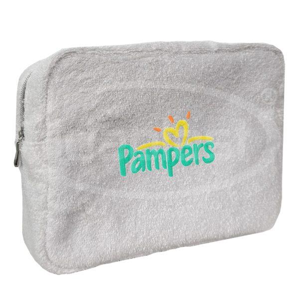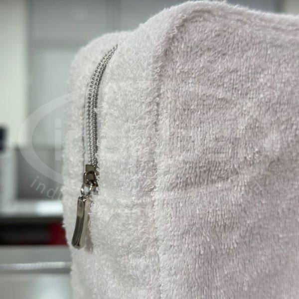 Necessaire atoalhada confeccionada em tecido de algodão. Com forro interno estruturado e zíper comum ou especial. Monte a sua com seu consultor!