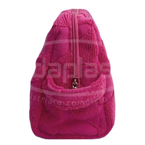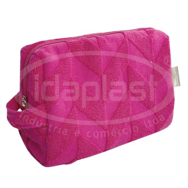 Necessaire confeccionada em tecido atoalhado (ou outro material a escolher), com forro interno, alça e fechamento em zíper comum ou trator. Monte a sua com seu consultor!