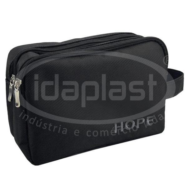 A Idaplast é fabricante de necessaire masculina para empresas e este modelo, desenvolvido originalmente para HOPE, possui dois compartimentos em zíper e pode ser confeccionado em nylon comum ou especial.
