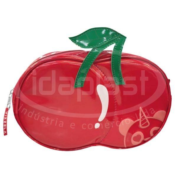 Necessaire confeccionada em sintético (diversos tipos e texturas para escolha!) em formato de cerejas. Com fechamento em zíper. Monte a sua com seu consultor!