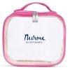 Necessaire em PVC cristal, com alça e laterais em couro sintético. Com puxadores simples ou especiais. Vivo encapado ou não. Opcional de forro interno. Monte a sua com seu consultor!