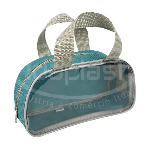 A Idaplast é fabricante de necessaire personalizada para empresas desde 1988. Este modelo é confeccionado em nylon (diversas cores disponíveis para escolha) e PVC cristal transparente. Com alça em correia.