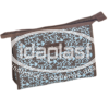 Necessaire personalizada em tecido. Com acabamento lateral em sintético. Forro interno e fechamento em zíper com cursor simples ou especial.