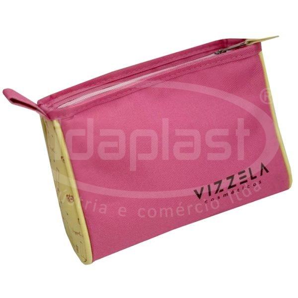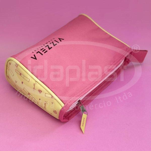 Necessaire personalizada em poliéster, com detalhe laterais em sintético (diversos tipos e cores para escolha!). Com cursor especial e forro interno. Monte a sua do zero com seu consultor!