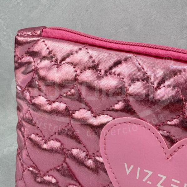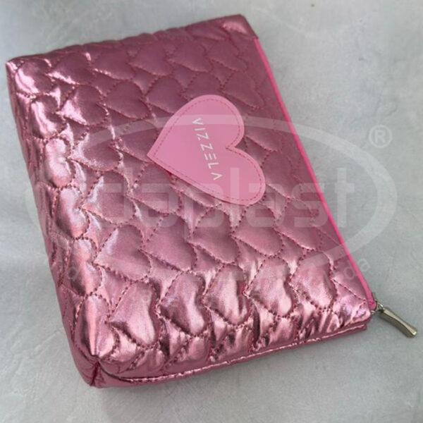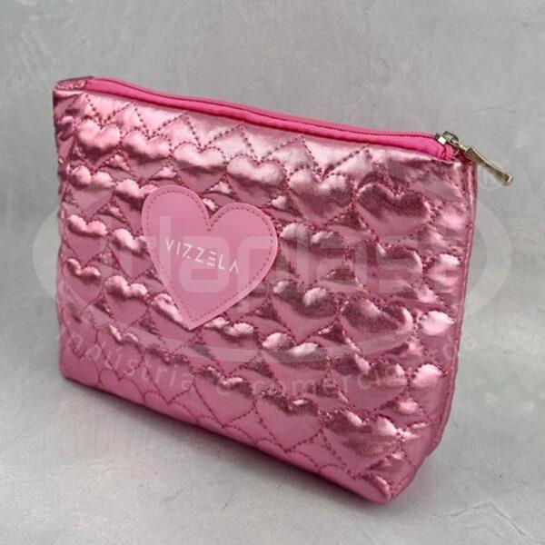 Necessaire puffer coração em matelasse especial cirre. Com detalhe frontal em sintético emborrachado. Monte a sua com seu consultor!