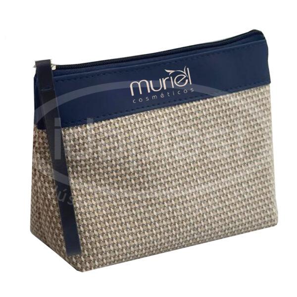 Necessaire rustica confeccionada em material tipo ráfia e detalhe em emborrachado. Monte a sua com seu consultor!