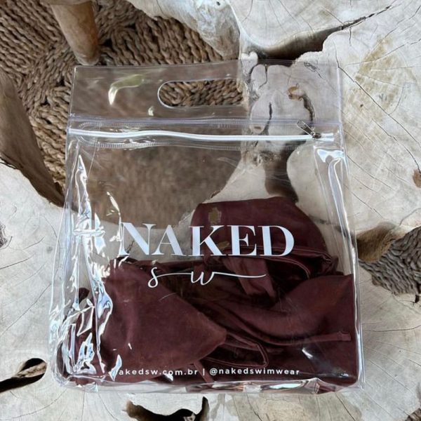Necessaire plástica personalizada confeccionada em PVC transparente, translúcido ou colorido. Ideal como embalagem para biquínis ou necessaire para cosméticos. Conta com alça manual embutida.