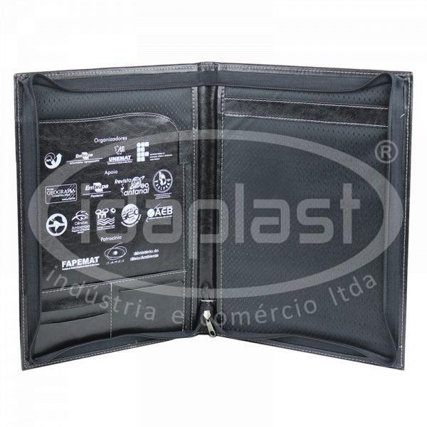 A Idaplast é fabricante de pasta convenção em couro. Ideal para eventos e cursos! Conta com bolso externo e, internamente, com porta bloco, bolsos e porta cartões. Fechamento em zíper. Acabamento costurado.