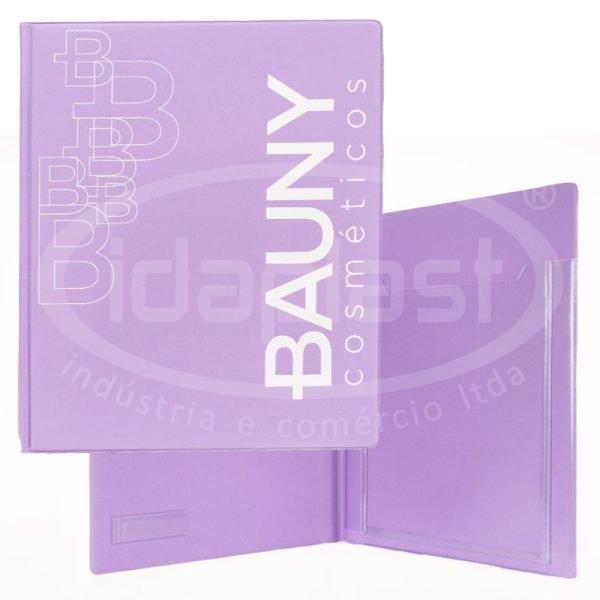 Pasta apresentação personalizada, ideal para exposição de projetos e produtos. Sugestão de confecção em sintético emborrachado (toque acetinado, fosco) com interior no mesmo material (cores a definir). Acabamento em solda eletronica. Interior com visor (podemos alterar o local dele, caso desejar), porta caneta e bolsão com profundidade/fole laterais.