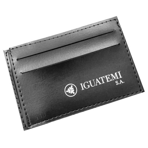 Porta cartões confeccionado em courino sintético (diversas cores para escolha). Com acabamento em costura.