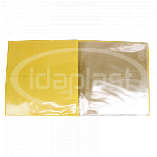 Porta manual com capa dura em plástico PVC. Internamente, conta com envelopes plásticos transparentes e bolsos na capa e contracapa. Solicite ao seu consultor a quantidade de envelopes internos que necessita.