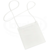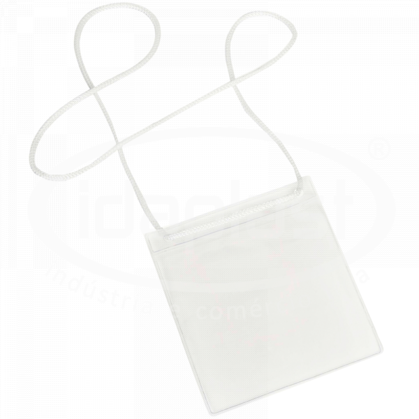 Crachá plástico transparente com cordão para identificação. Solicite ao seu consultor a inserção de zíper (ziplock ou zipzap), caso necessite.