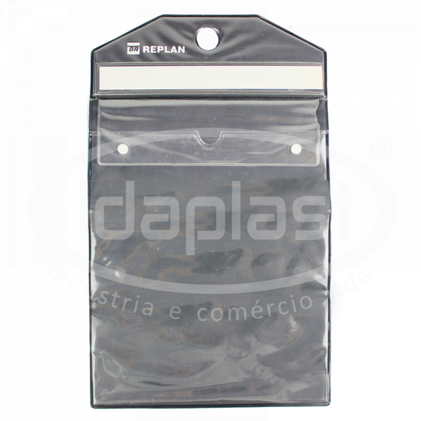 Quadro fiscal contábil personalizado para identificação. Confeccionado em PVC colorido e transparente. Conta com aba para fechamento e dois botões de pressão plásticos. Com visor na tarja.