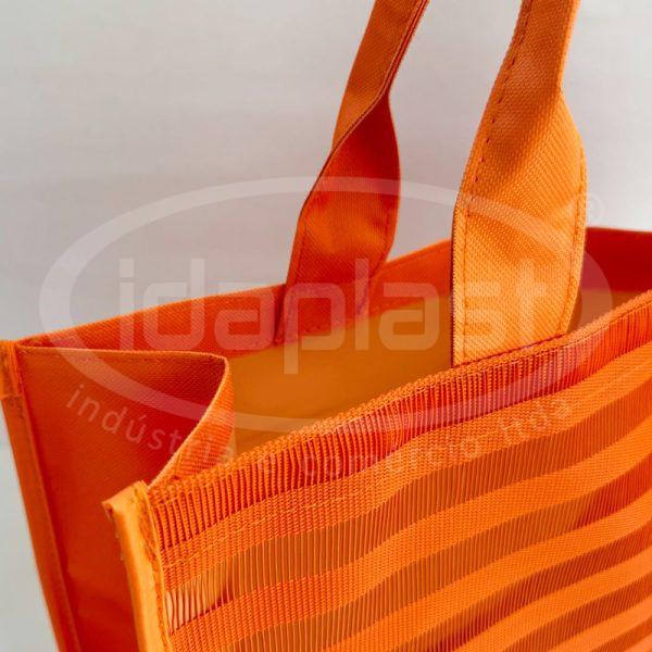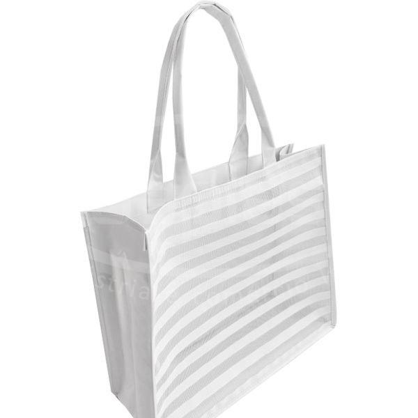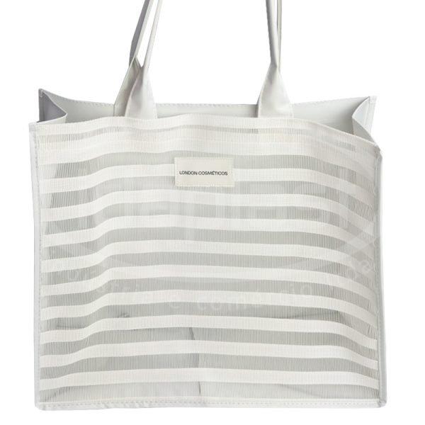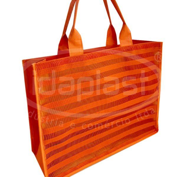 Bolsa tipo sacola de praia confeccionada em tela especial e poliéster de cor a definir (verso, alças e laterais). Com opção de personalização da sua marca impressa em etiqueta lateral.