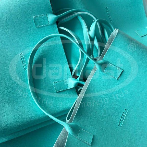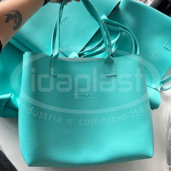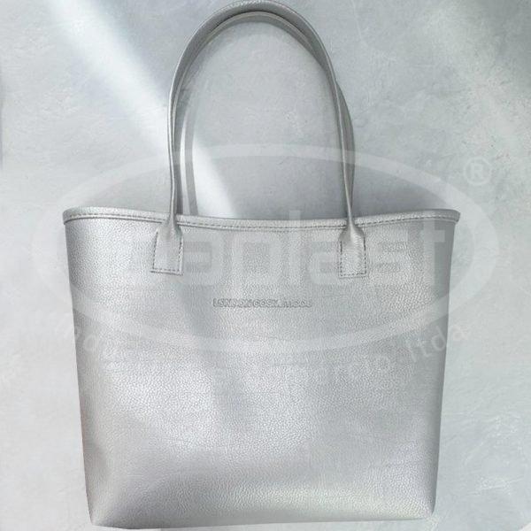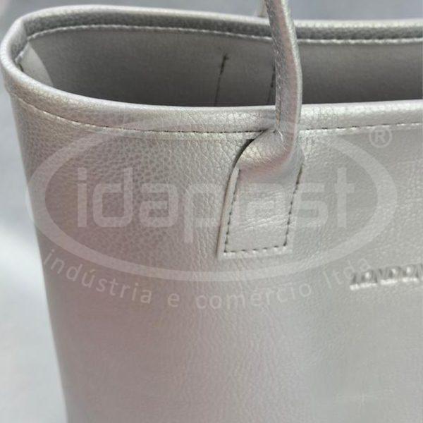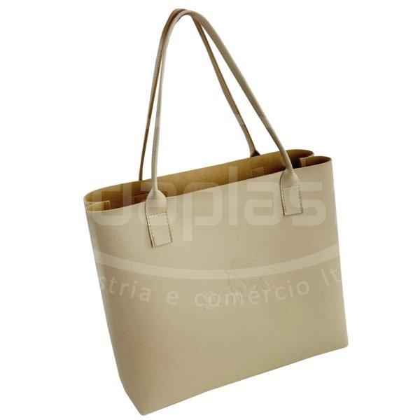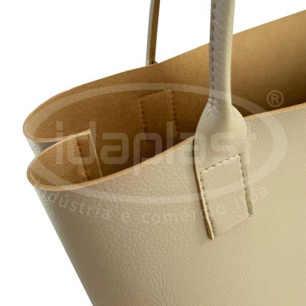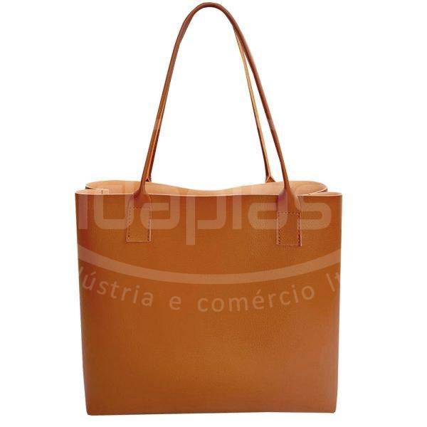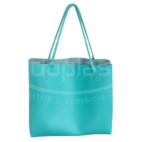 Bolsa promocional feminina em courino sintético com forro aveludado. Alças no mesmo material. Possibilidade de colocar forro interno (personalizado ou não) ou courino na borda/bocal