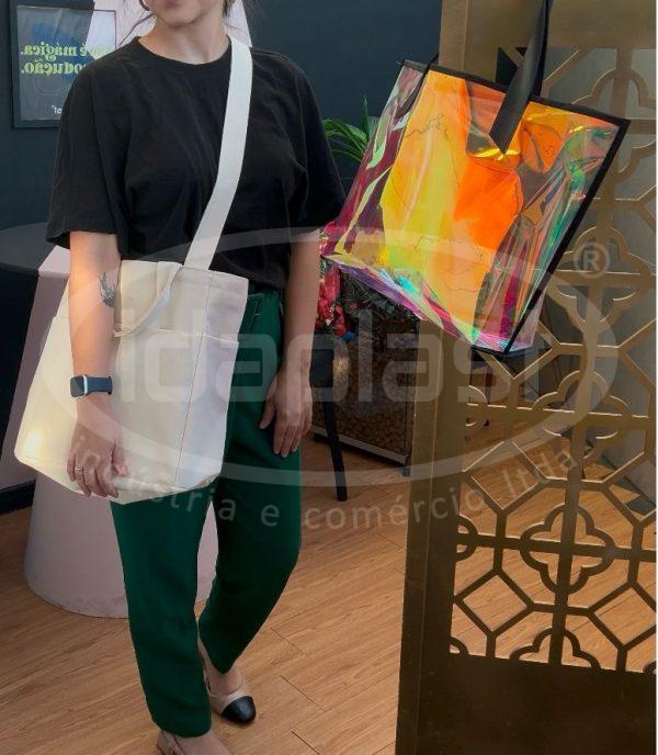 A Idaplast é fabricante de ecobag personalizada (sacola em algodão cru) e outros tipos de sacolas personalizadas. Este modelo pode ser confeccionado em nylon emborrachado ou lona crua de algodão (além de outros tipos de materiais), com alças de mão e tiracolo (personalizadas ou não). Com bolsos laterais para garrafas (ou não). Monte a sua com seu consultor!