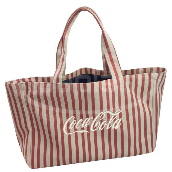 Sacola em lona listrada (ou estampada com qualquer outra arte enviada pelo cliente). Com opcional de forro interno.