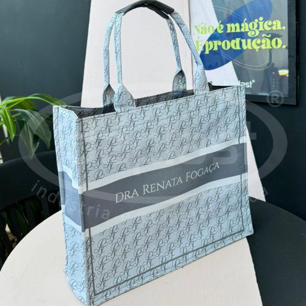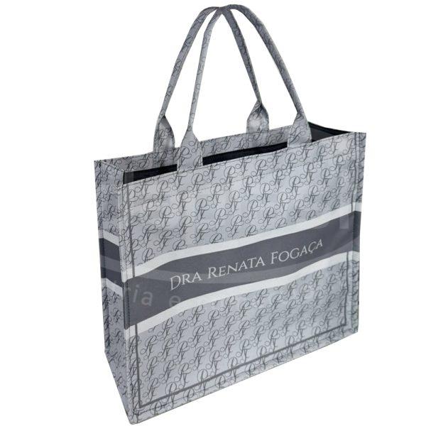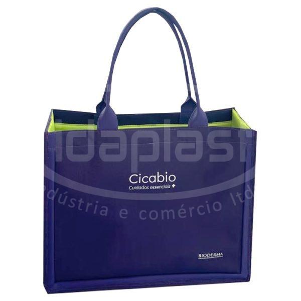 Sacola estruturada grande ideal para eventos e brindes! Confeccionada em poliéster ou courino sintético (diversos tipos, texturas e cores de materiais para escolha). Pode contar ou não com pegador nas alças. Podemos fabricar com fechamento: em zíper ou botão imã. Monte a sua com seu consultor!