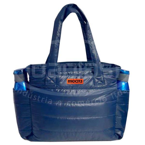 Sacola confeccionada em matelasse puffer com alças no mesmo material. Forro interno e bolsos laterais para garrafas. Monte a sua com seu consultor!